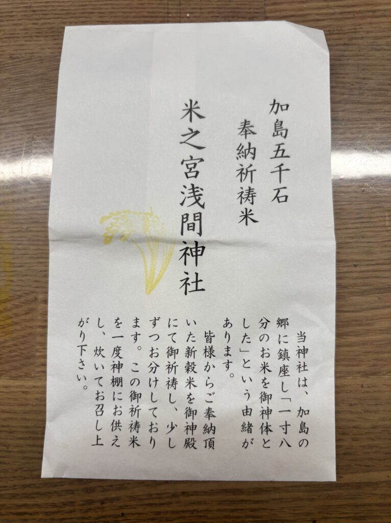 ↑こちらはお祓いした後にいただける、ありがたいお米。