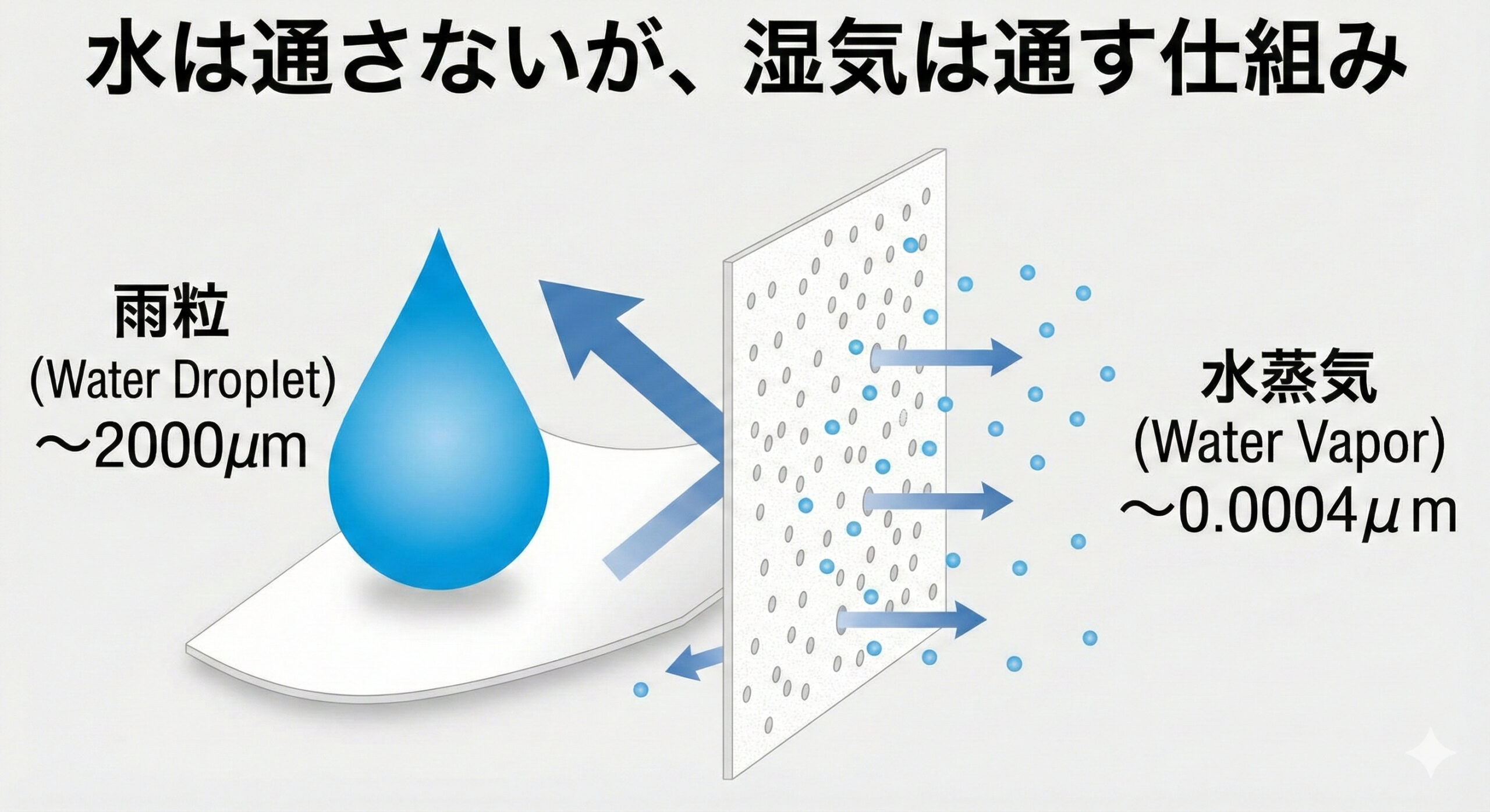 では、なぜ「水は通さないのに、湿気は通す」ことができるのでしょうか?