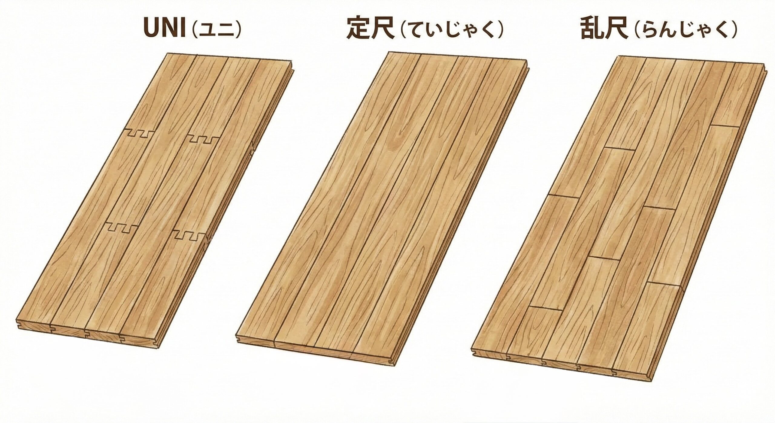 また、「定尺」のように長さが揃っていないため、継ぎ目の位置がランダムになります。
