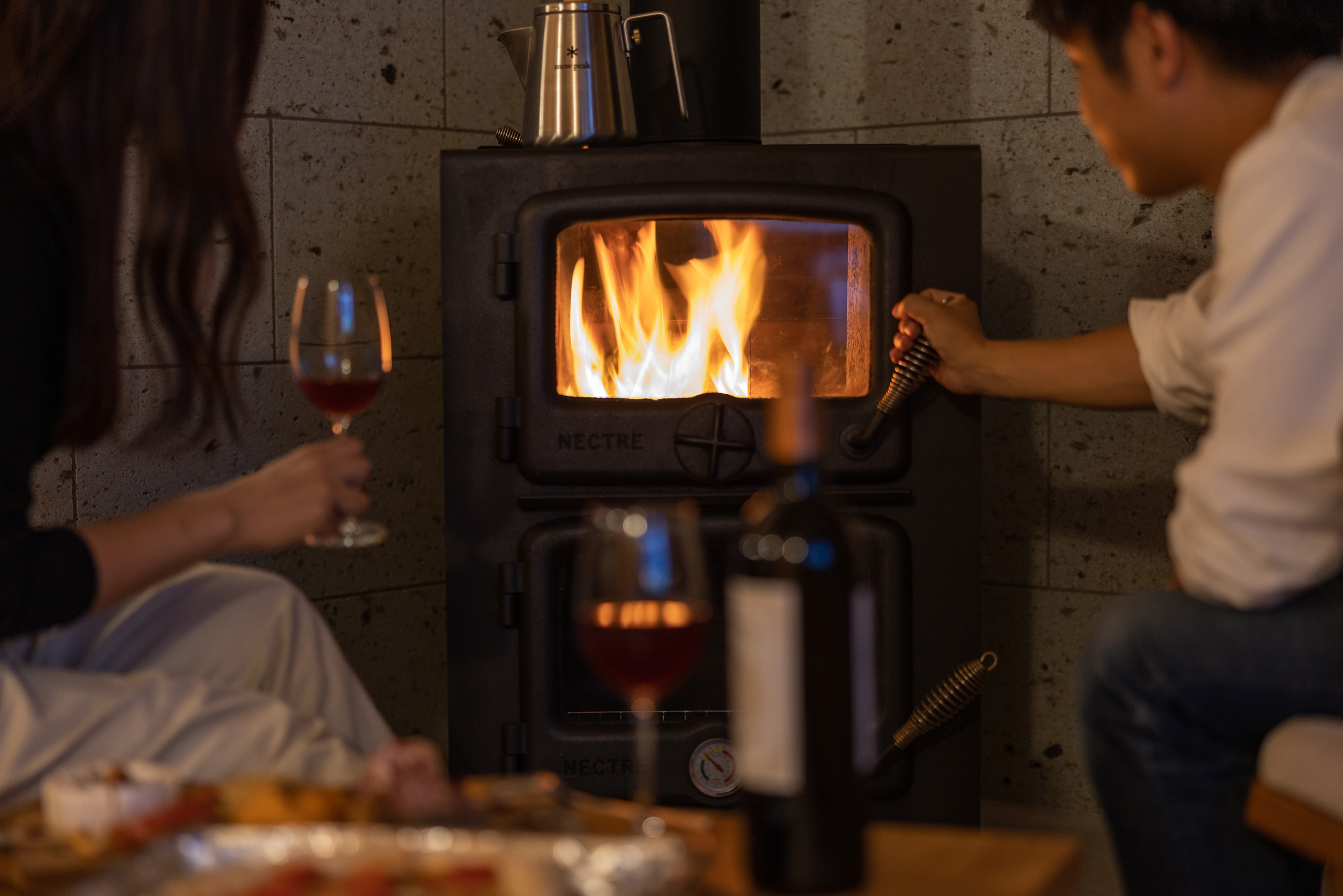 薪を燃料にしたストーブは人にも環境にも優しい設備。