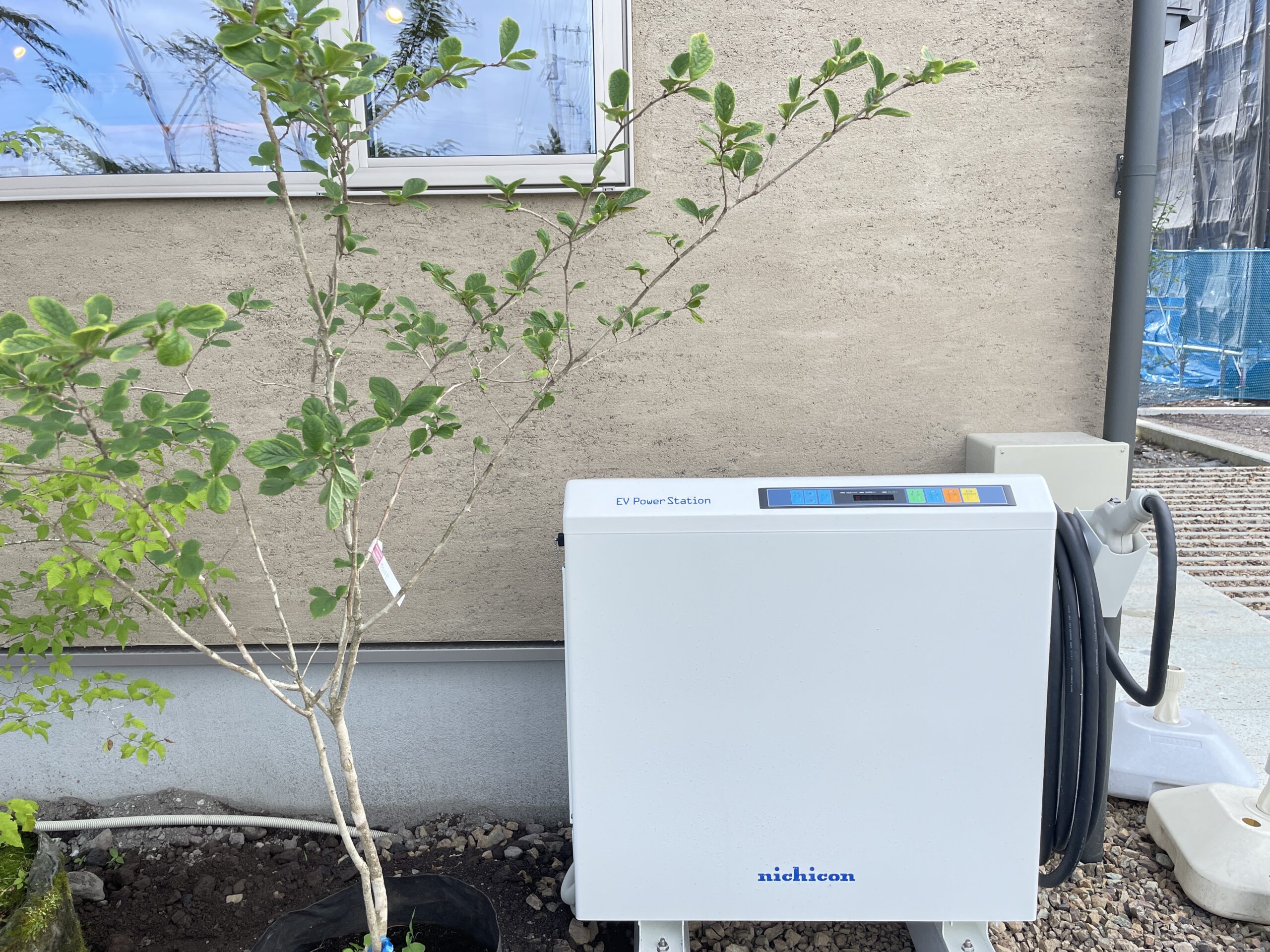 電気自動車の蓄電池に電力を貯め、住宅でも使用可能にする『V2H』を完備。