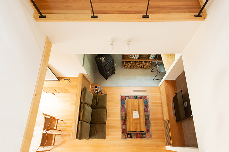 薪ストーブのあるワークスペースなど、暮らしを楽しむ工夫を凝らしたお家です。