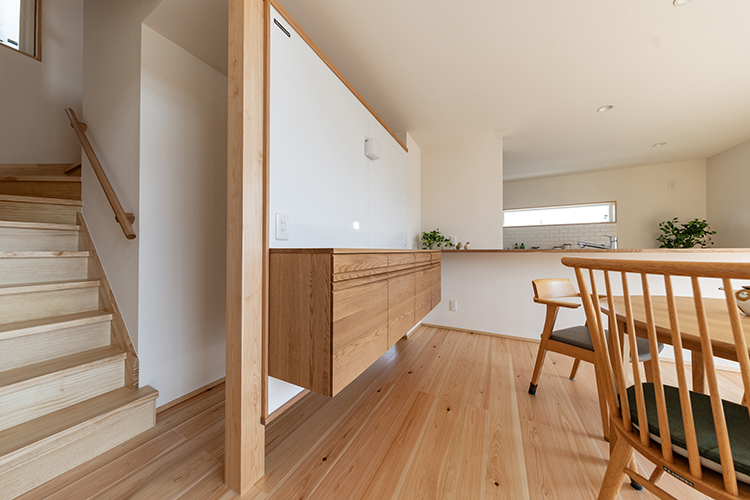 空気を循環させるため、ダイニングと廊下を仕切る壁の上下に隙間を設けています。