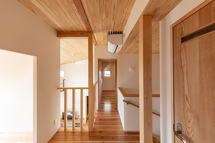 小屋裏ならぬ、最上階エアコン。小屋裏を使わずに空調コントロールするので、コスト面でのメリット◎。