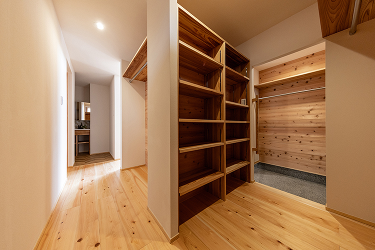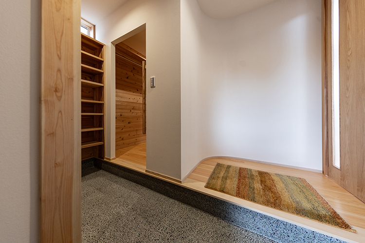 玄関奥には土間収納。大容量シューズクロゼットと共に、アウトドア用品などをさっと置けます。
